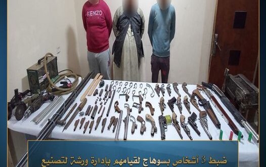 تمكن قطاع الامن العاام “المنشأة بسوهاج” بضبط 3 عاملين لتصنيع الاسلحة بدون ترخيص