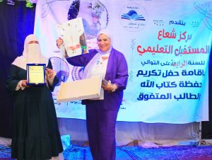 وقامت ايضا مديره المركز التعليمى بتكريم حوالى 100 طالب من حفظة القرأن الكريم بالمركز وذلك لتفوقهم وحفظم لايات الله عز وجل وسط حضور متميز وكبير للطلاب واولياء امورهم.