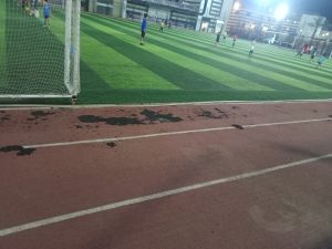 والمدهش ان امن النادى يمنعون اى اشخاص بدون لبس رياضى للجرى فى الملعب والملعب مخصص للمدربين واللاعبين والحقيقة ان تراك الملعب بأقل جوده واذا نظرنا الى نادى طنطا الرياضى الذى يفتح ملعبه من التاسعة صباحا حتى الحادية عشرا يلعبون مباريات ومفتوح للاعضاء ولتمارين جميع فرق النادى يجرون حوله لم تجد العبث المتواجد داخل نادى ماتريكس