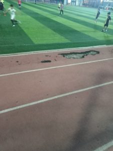 الا ان المنشأت بلا صيانة والصور هى من تتحدث , حيث ما يزيد عن عام مازال تراك ملعب الكرة بلا صيانة تراك لا يصلح للجرى ويهدد الاعضاء بالاصابات