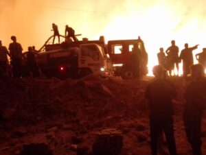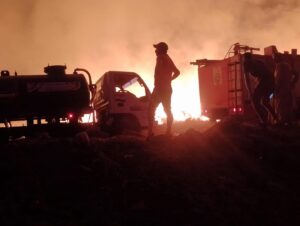 وتم الدفع بعدد (19) سيارة حماية مدنية، وخزان مياه بسعة 35 طنًا، وعدد من سيارات إسعاف، ولوادر ثقيلة، و(22) فنطاس مياه، بالإضافة إلى دعم إضافي بعدد (12) سيارة مياه من مختلف مراكز ومدن وأحياء المحافظة، وذلك في إطار خطة دعم عاجلة لتسريع السيطرة على موقع الحادث
