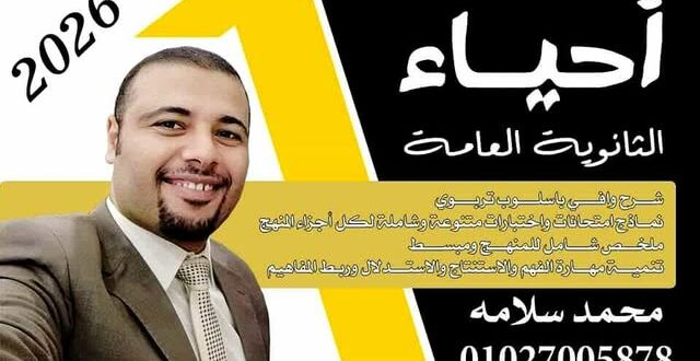 رسالة أخيرة في ظل صعوبة مادة الأحياء، نوجه نصيحة خالصة لكل طالب يبحث عن التفوق والراحة النفسية في الدراسة: لا تتردد في أن تبدأ رحلتك مع الأستاذ محمد سلامة، فمعه الأحياء تصبح أسهل… والتفوق يصبح ممكنًا.