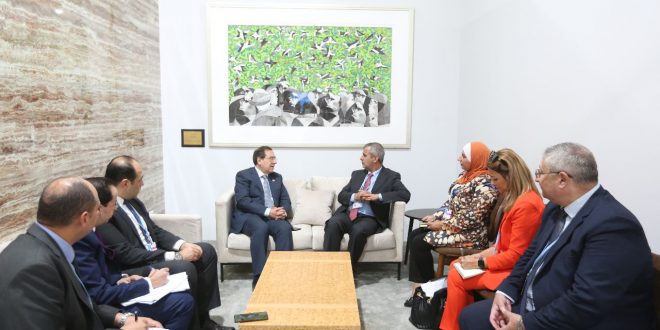 عقد المهندس طارق الملا وزير البترول والثروة المعدنية جلسة مباحثات مع الدكتور صالح الخرابشة وزير الطاقة الاردنى بالجناح المصرى داخل قمة المناخ COP27 المنعقدة حالياً بشرم الشيخ ، حيث تم استعراض أوجه العلاقات المشتركة بين مصر والاردن في قطاع الغاز الطبيعى ، كما شملت المباحثات مناقشة جهود الانتقال الطاقى وماتشهده من تطورات في كلا البلدين في ضوء الفرص المتاحة لتنمية موارد الغاز الطبيعى والهيدروجين .
